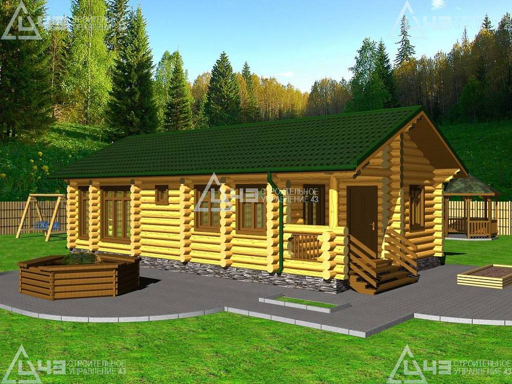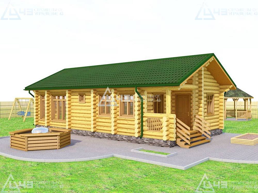 A great rounded-log bathhouse for a pleasant holiday