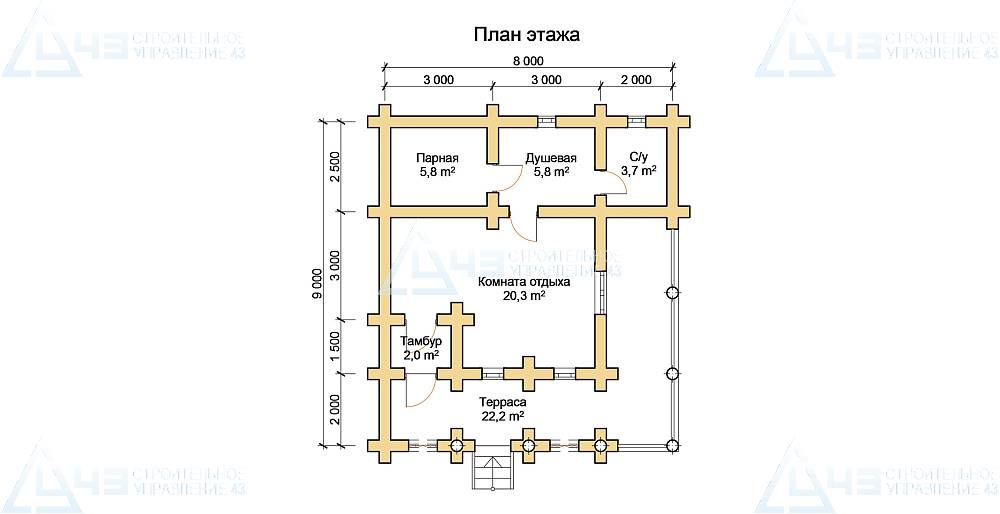 This bathhouse is made of rounded logs with a diameter of 320 mm (architecture).