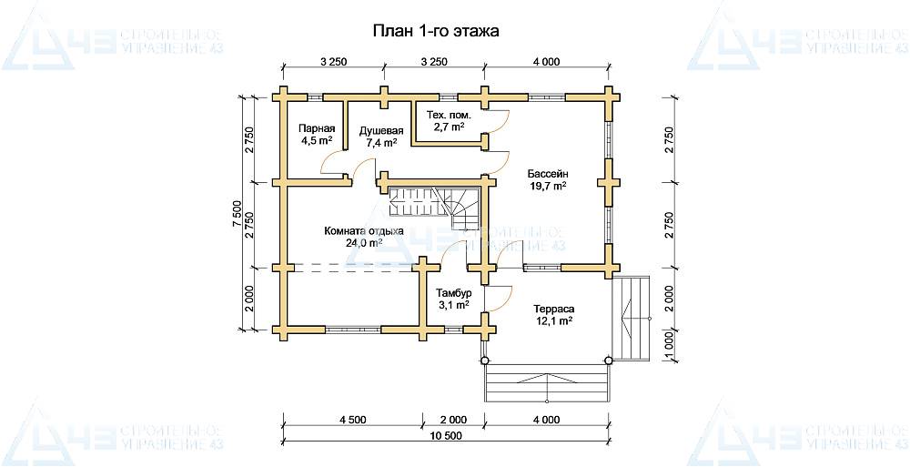 The size of the house: 7.5 by 10.5 m