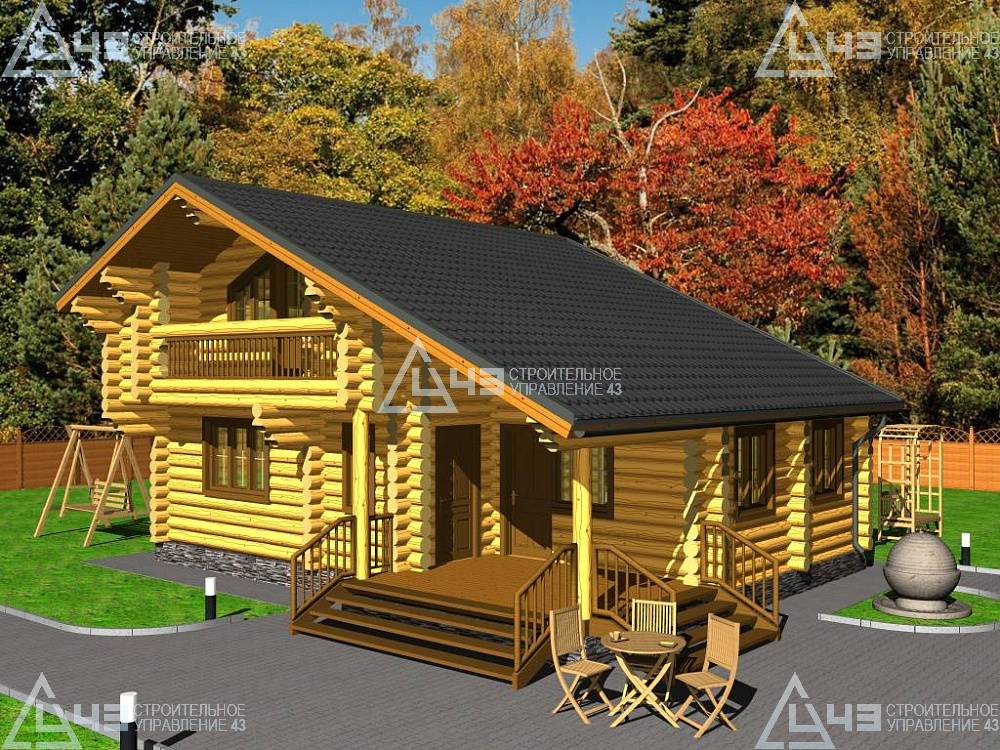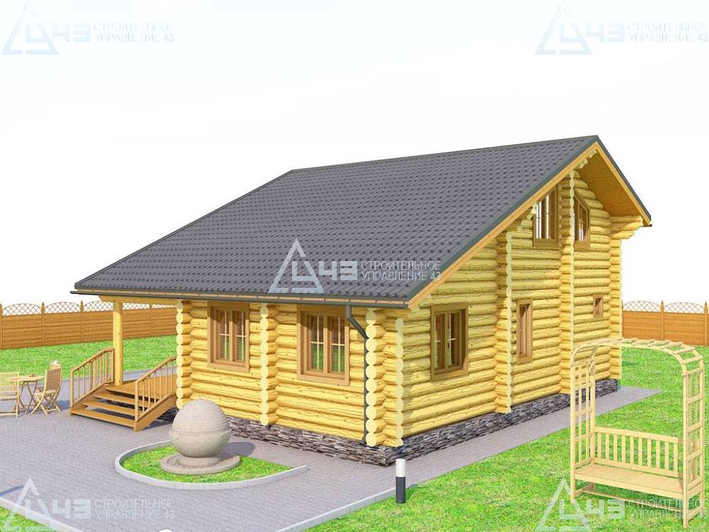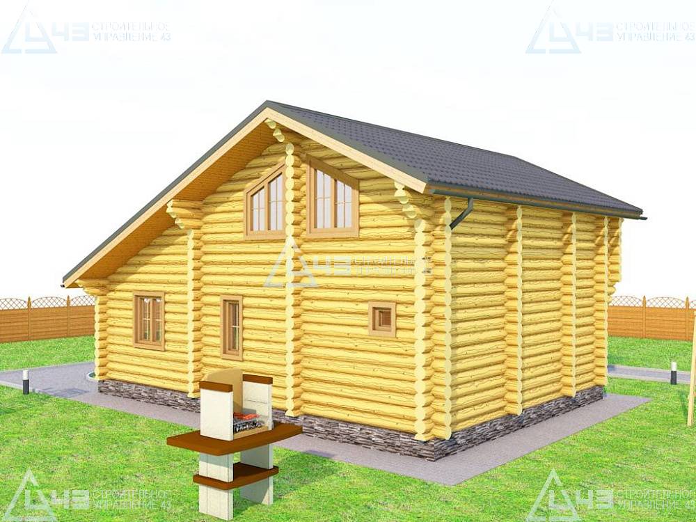 The bath is made of cylindrical logs with a diameter of 220 mm.