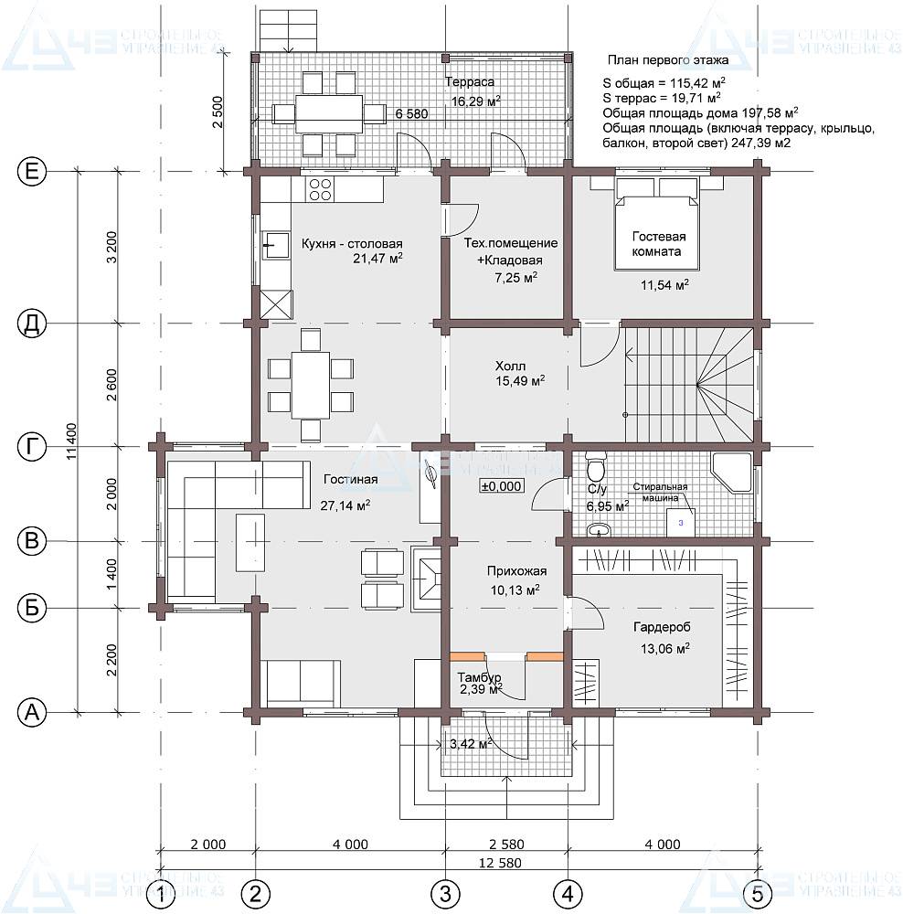 House dimensions: 11,4x12,58 m