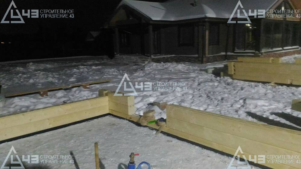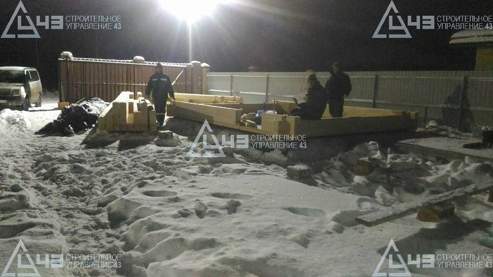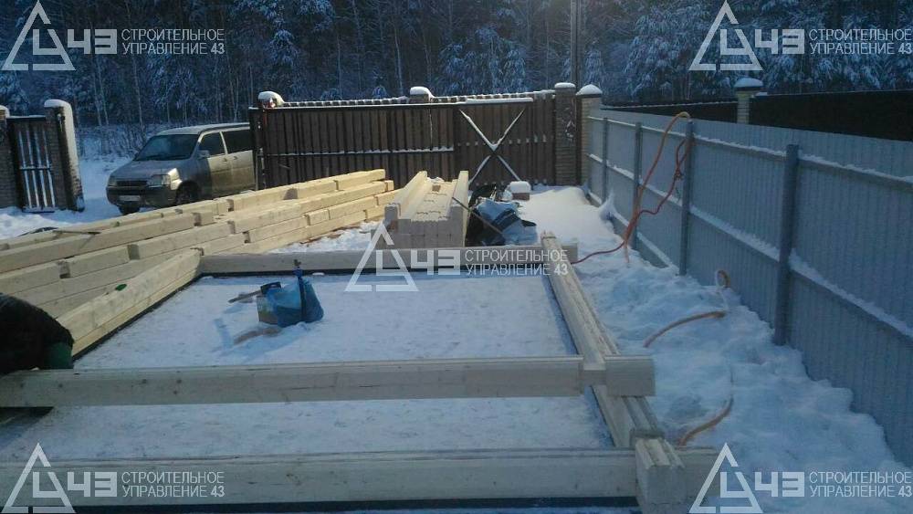 Construction of a small 16 m3 bathhouse in Tatarstan, using the glued beam with a size of 185 (h) * 160.