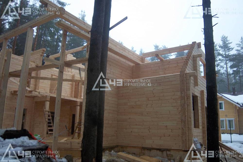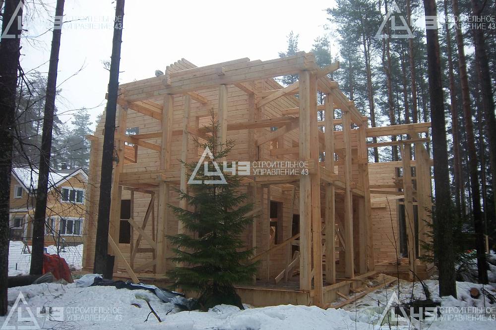 Since February 1, 2015, our company has been building a house with a total area of 290 m2, with a glued beam of 190*245 mm. The construction of the facility is carried out in Leningrad, Selenogorsk.