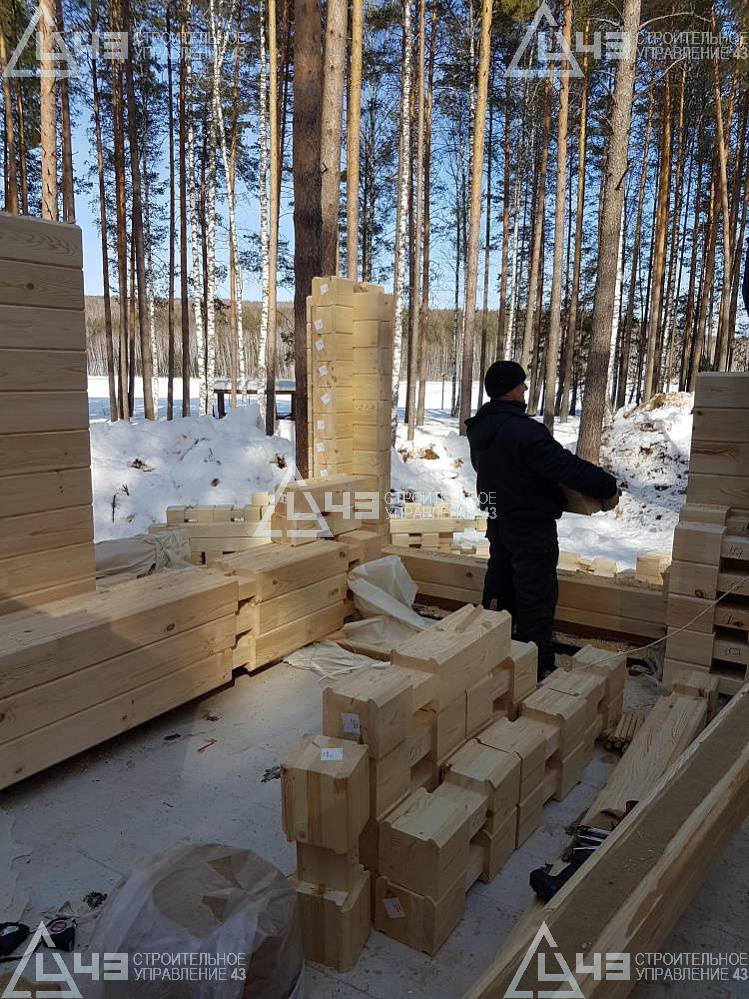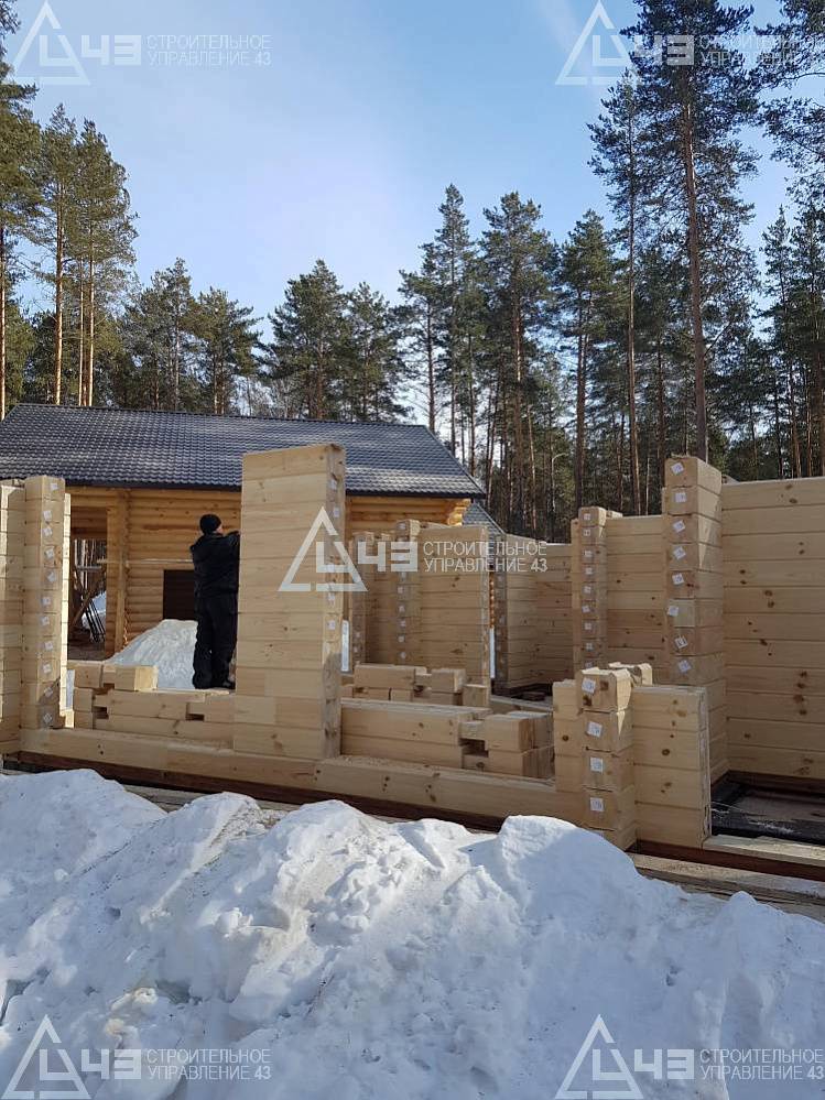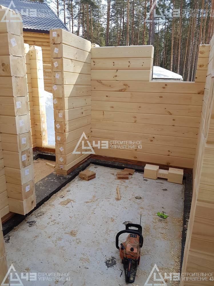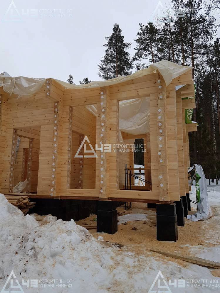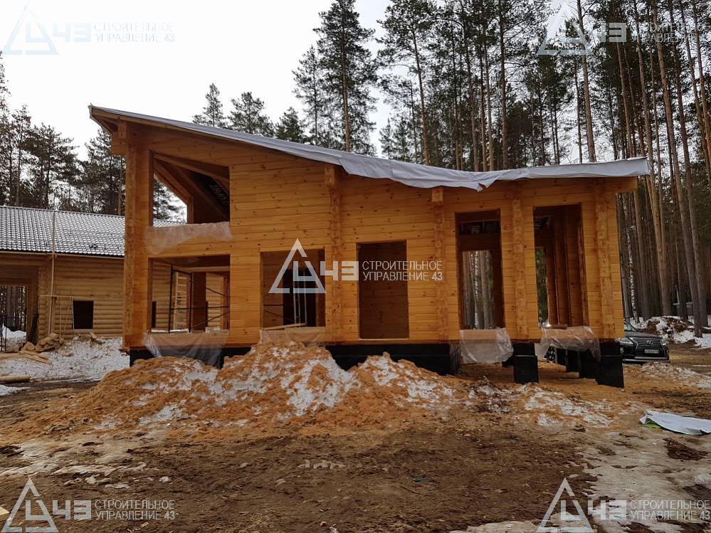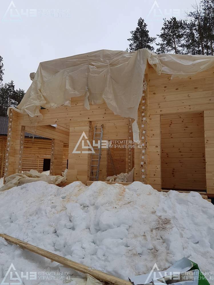 The house construction in Tchaikovsky, using the 185*200 mm glued beam. The total area is 40.48 m3. The volume of the glued beam is 44.82 m3. The idea of the house project was decided by the customer. Below you can see pictures of the house project and the construction process.
