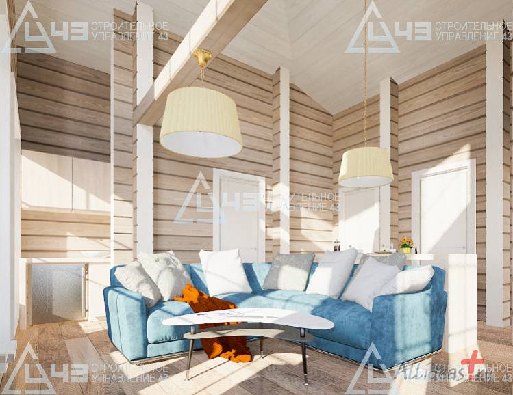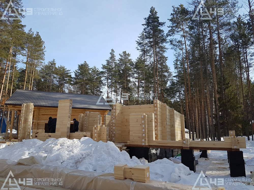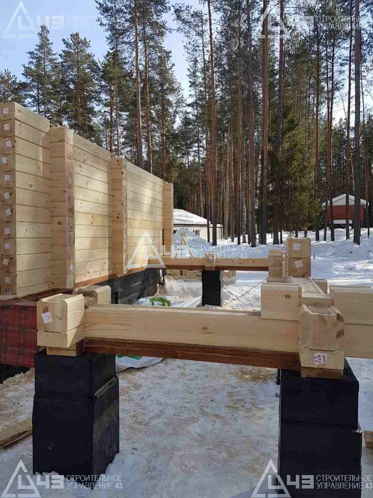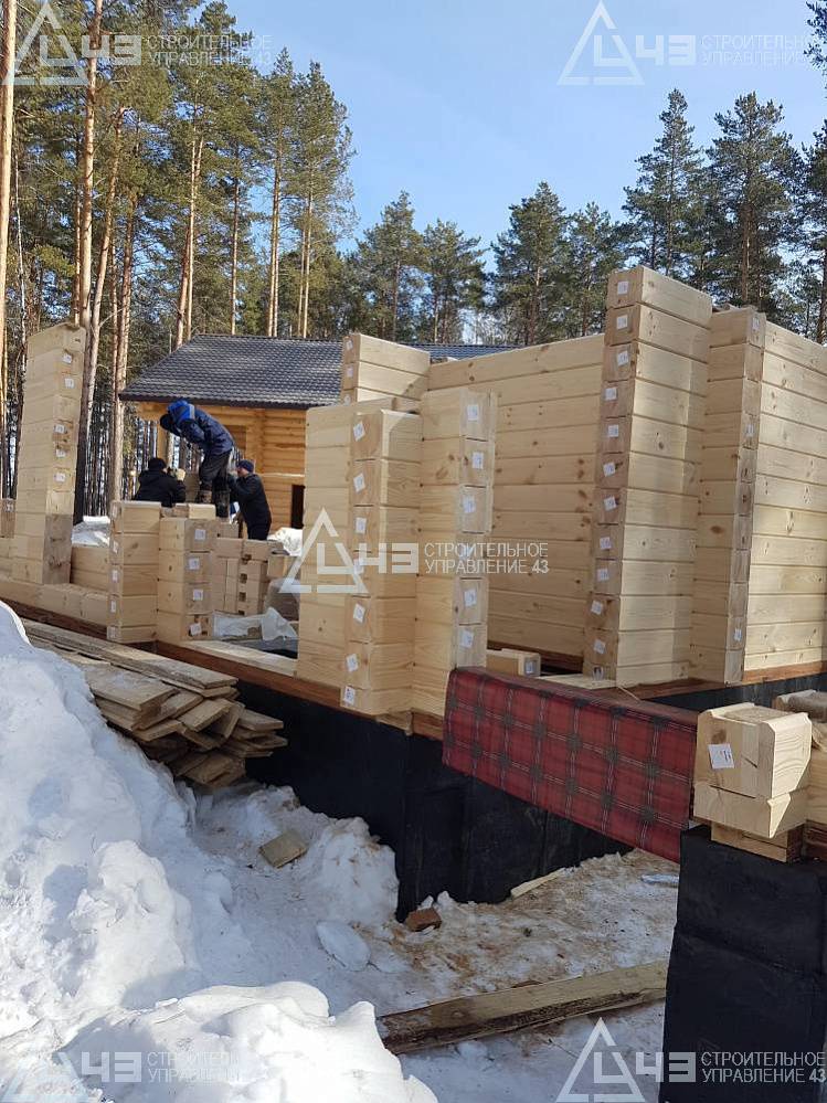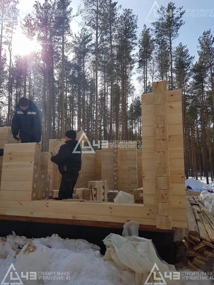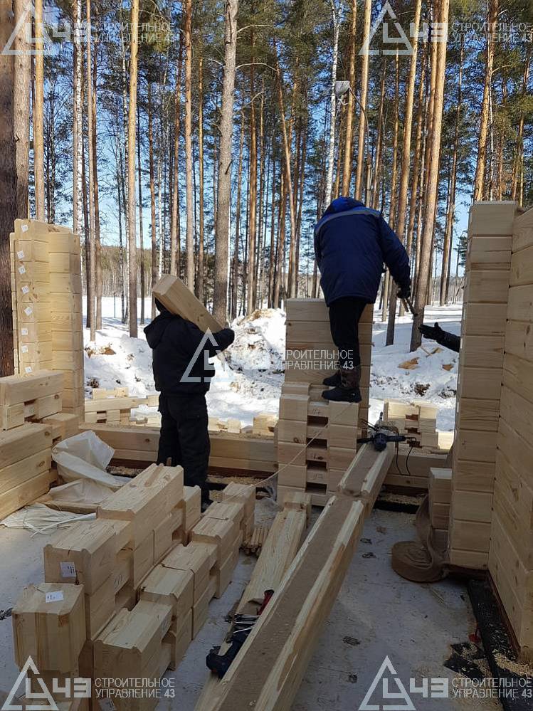 The house construction in Tchaikovsky, using the 185*200 mm glued beam. The total area is 40.48 m3. The volume of the glued beam is 44.82 m3. The idea of the house project was decided by the customer. Below you can see pictures of the house project and the construction process.