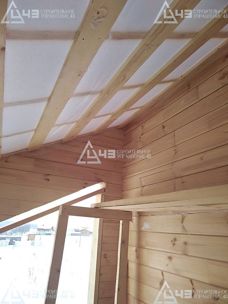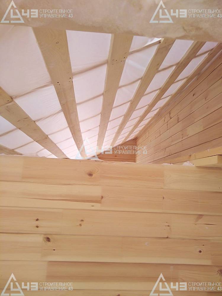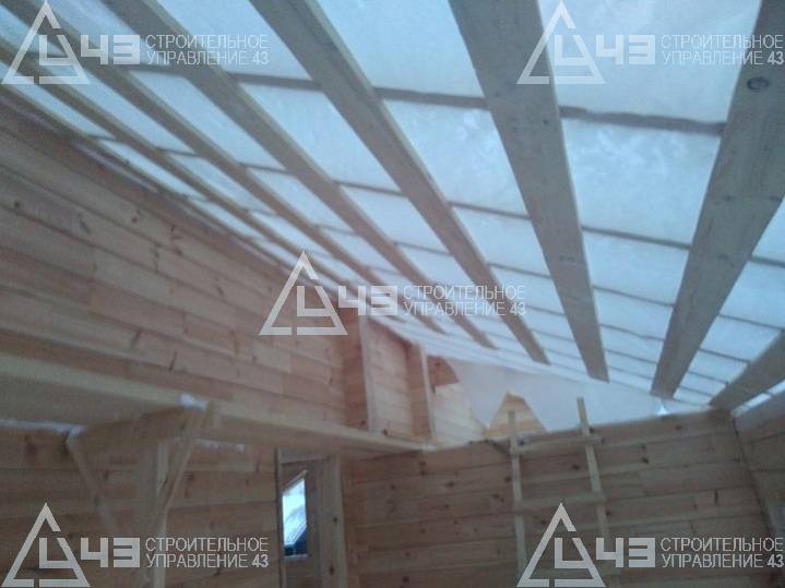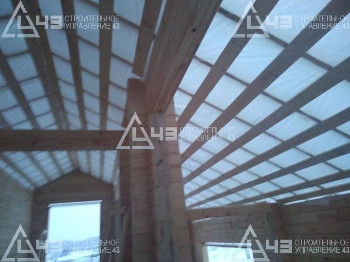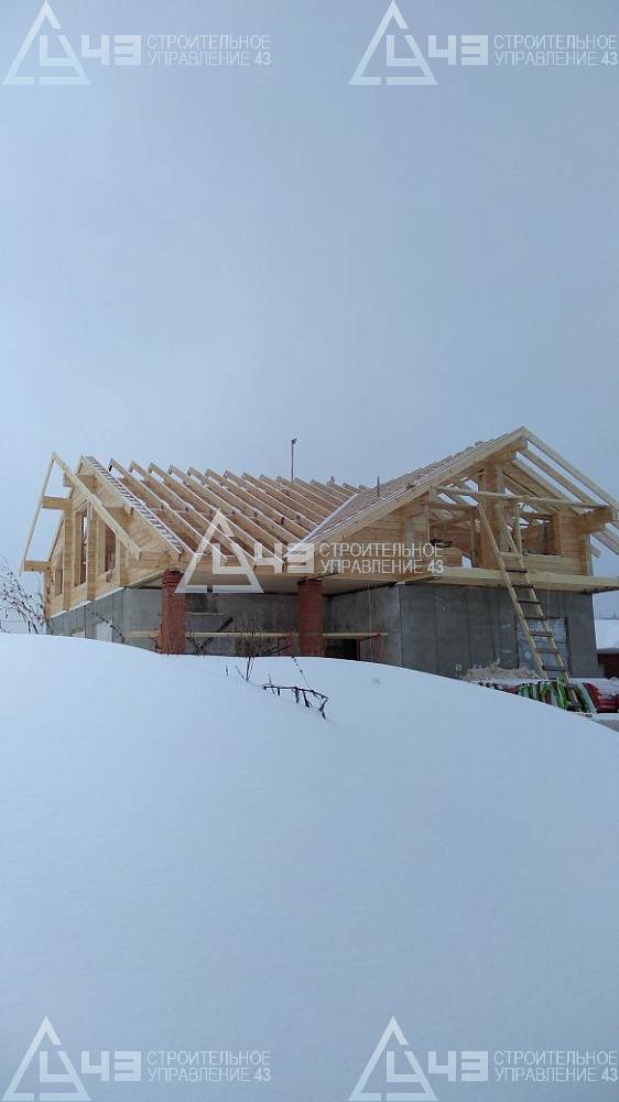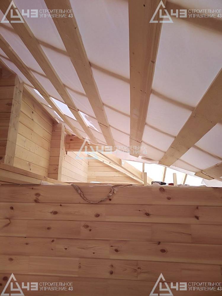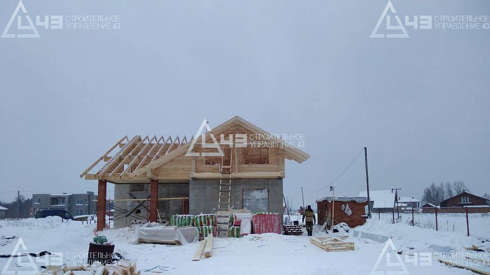 Constructing the second floor of a glued beam house in Leonovo Ecopark. Glued beam used has a size of 185 (h) * 200 mm.