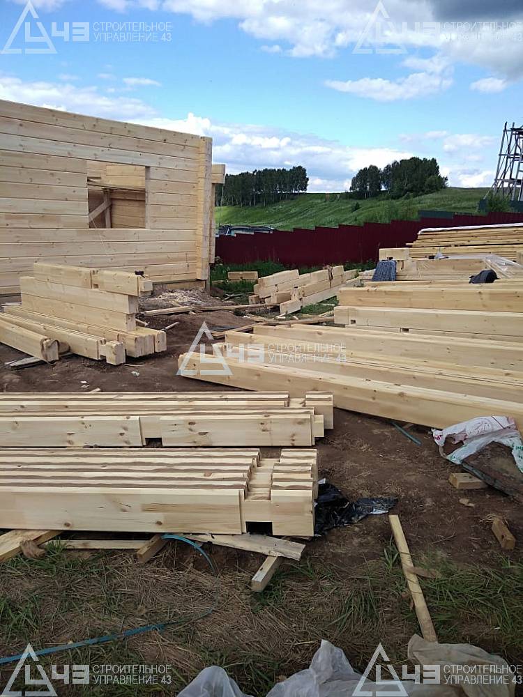 The house construction, using glued beams, in Batibino Village, Trinity District, Moscow, begins. The volume of the glued beam is (185 (h) * 200 and 185 (h) * 160 mm) 70m3.