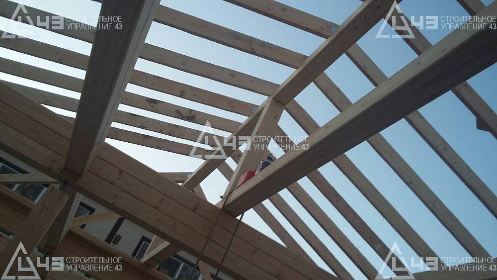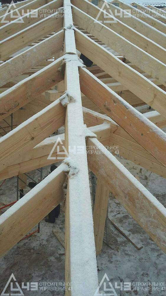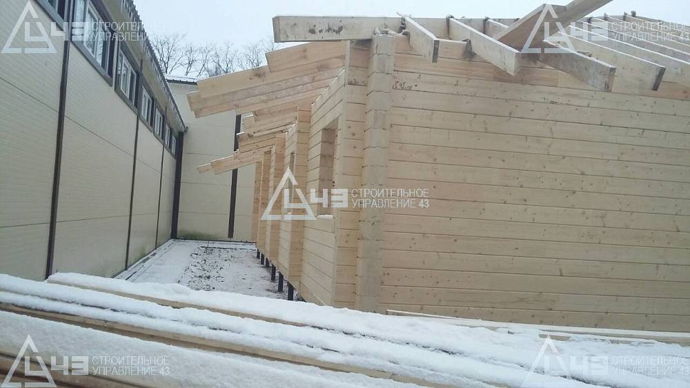 The construction of a glued beam stable in Voronezh. Glued beam size is 185 (h) * 200 mm.