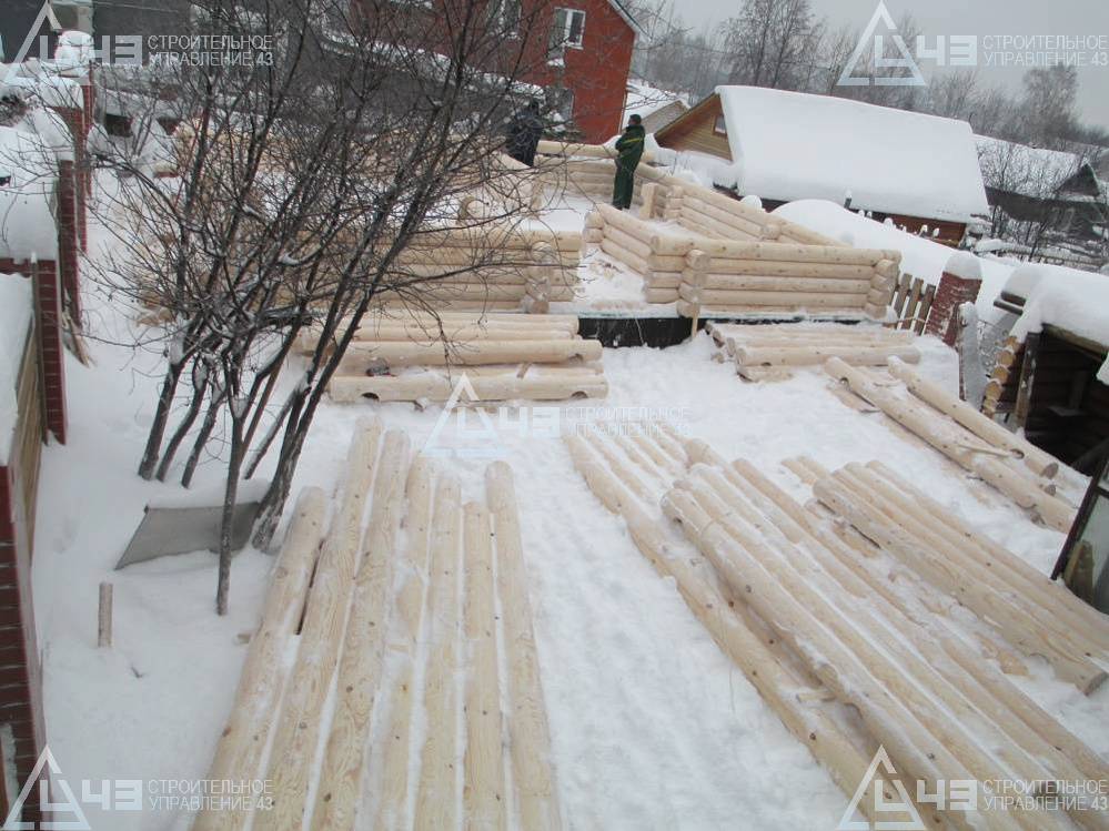 The construction of the 73.68 m2 house, using the rounded log with a diameter of 220 mm, has begun.