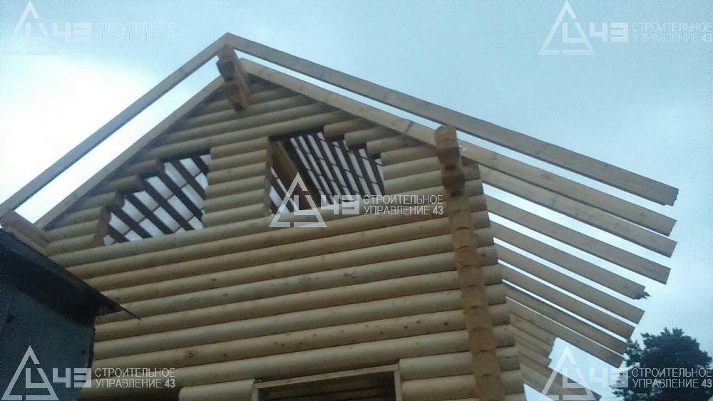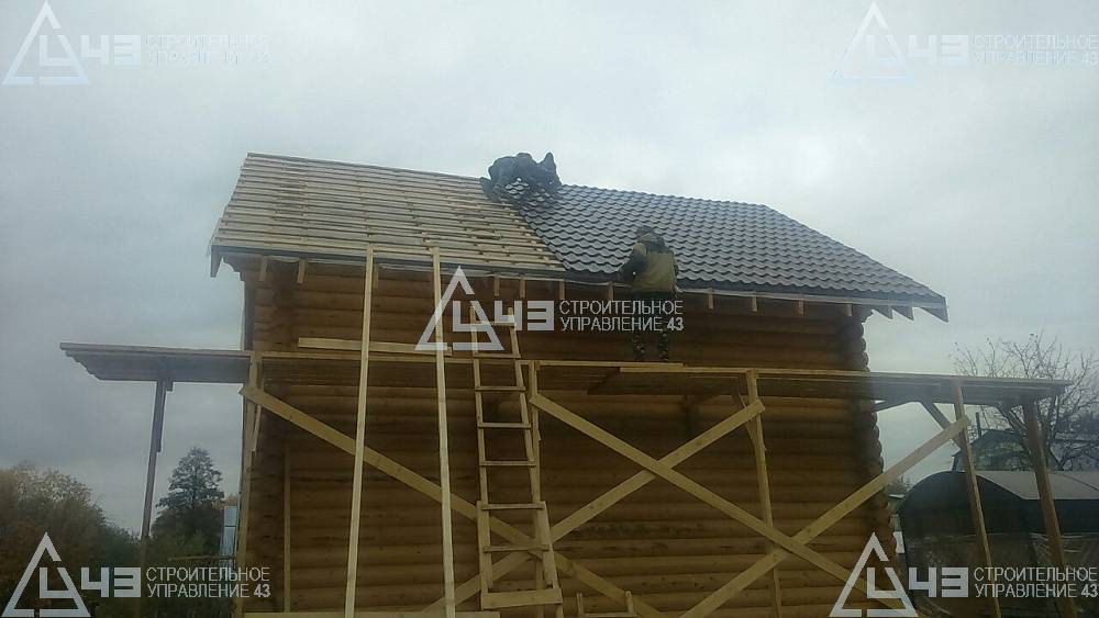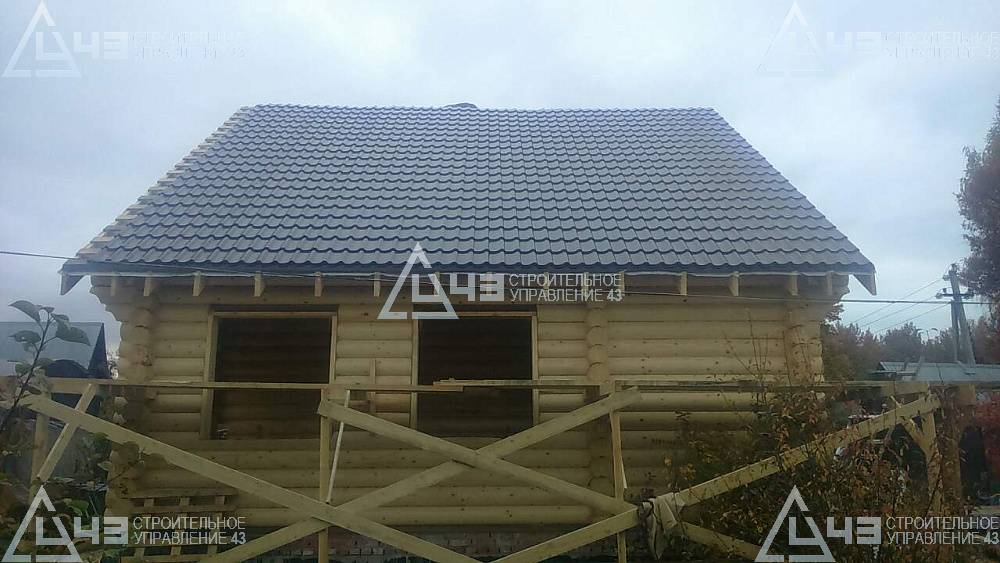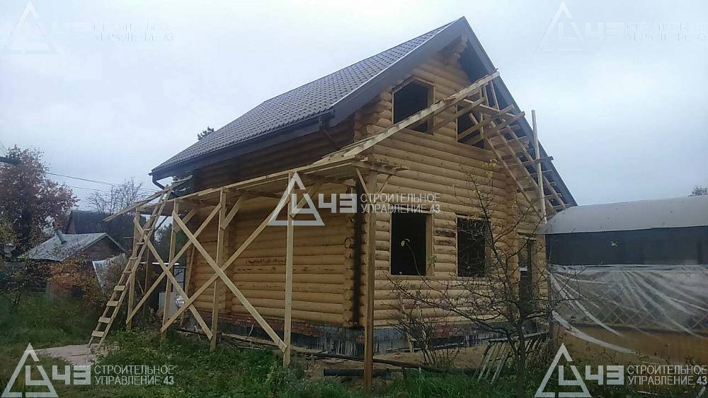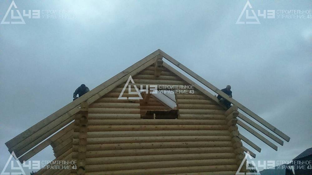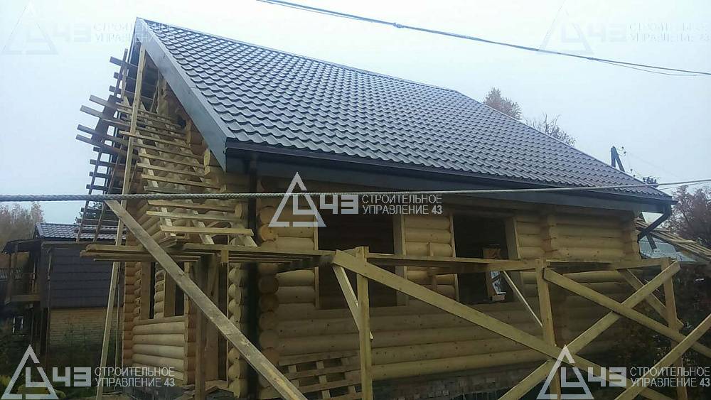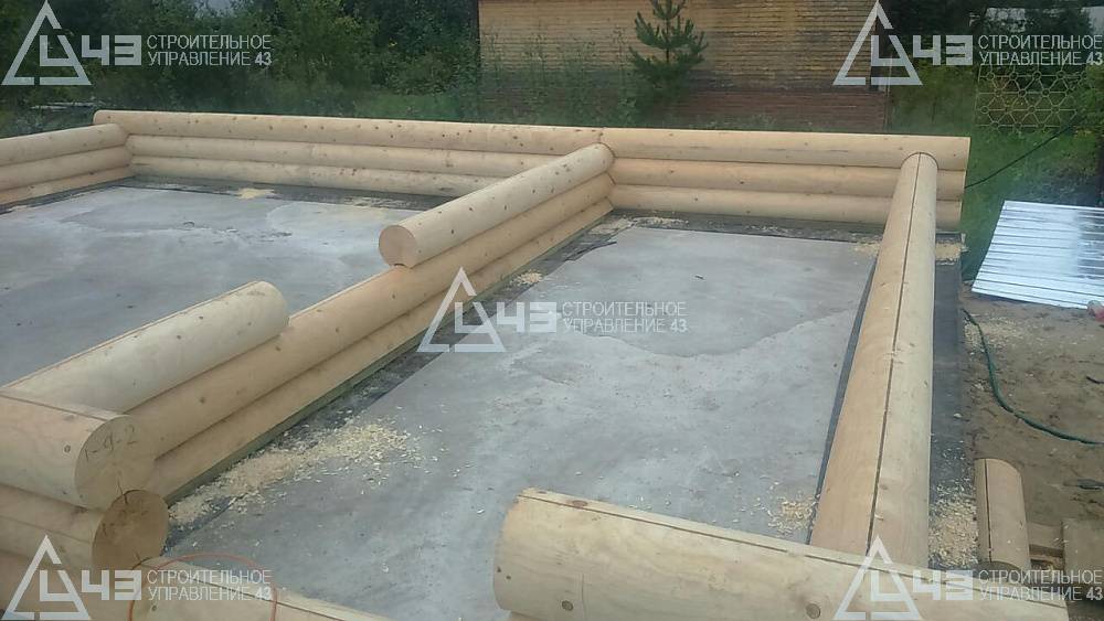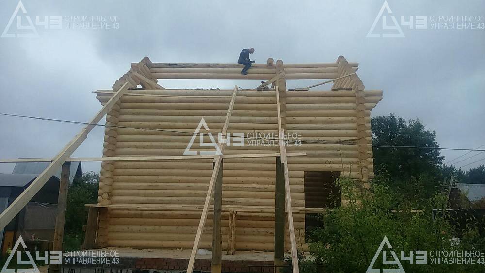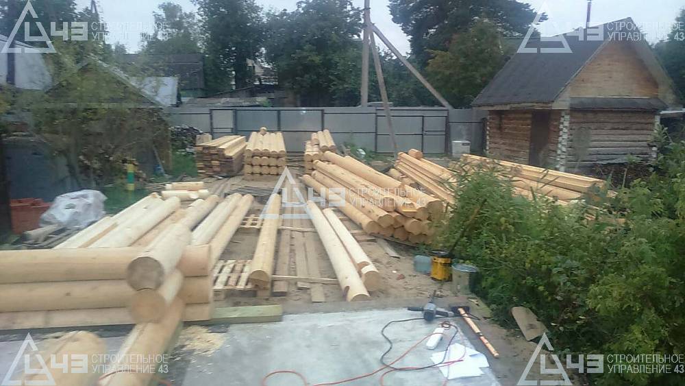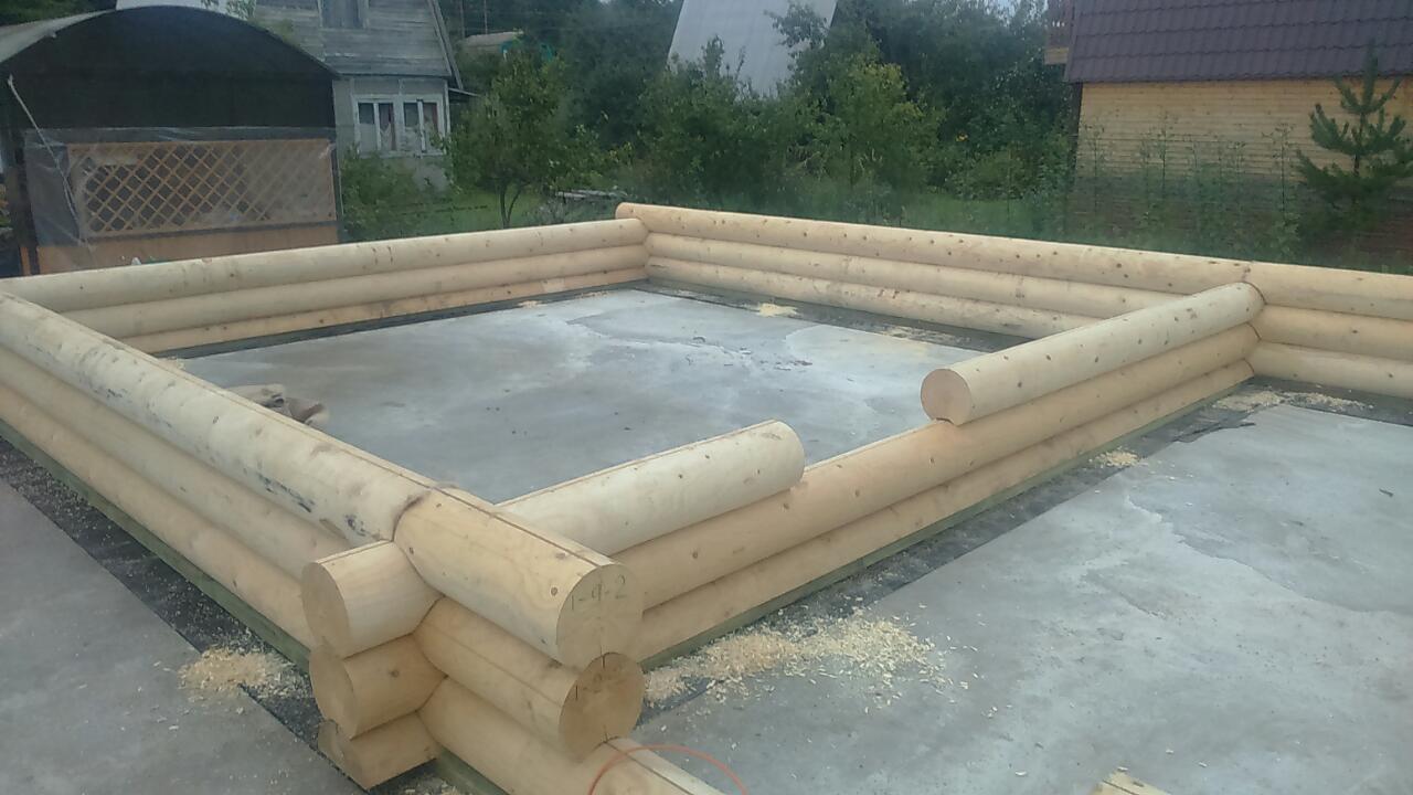 Construction of house, made of rounded logs, in Kazan. The log diameter is 240 mm.