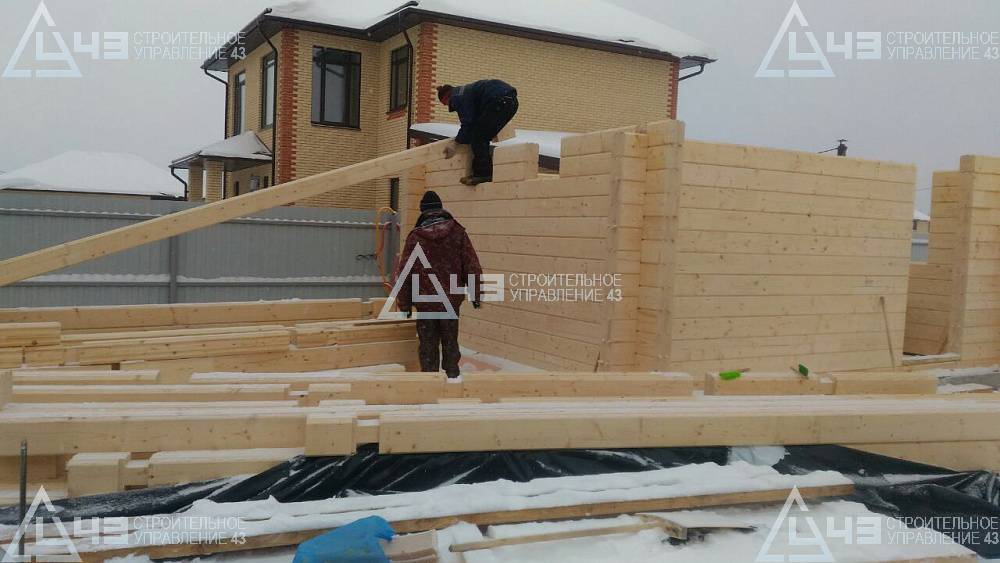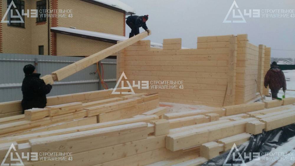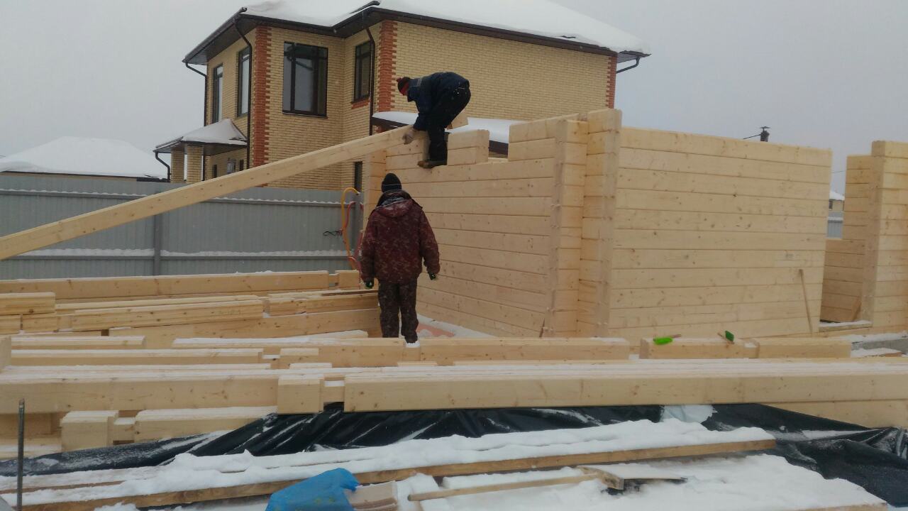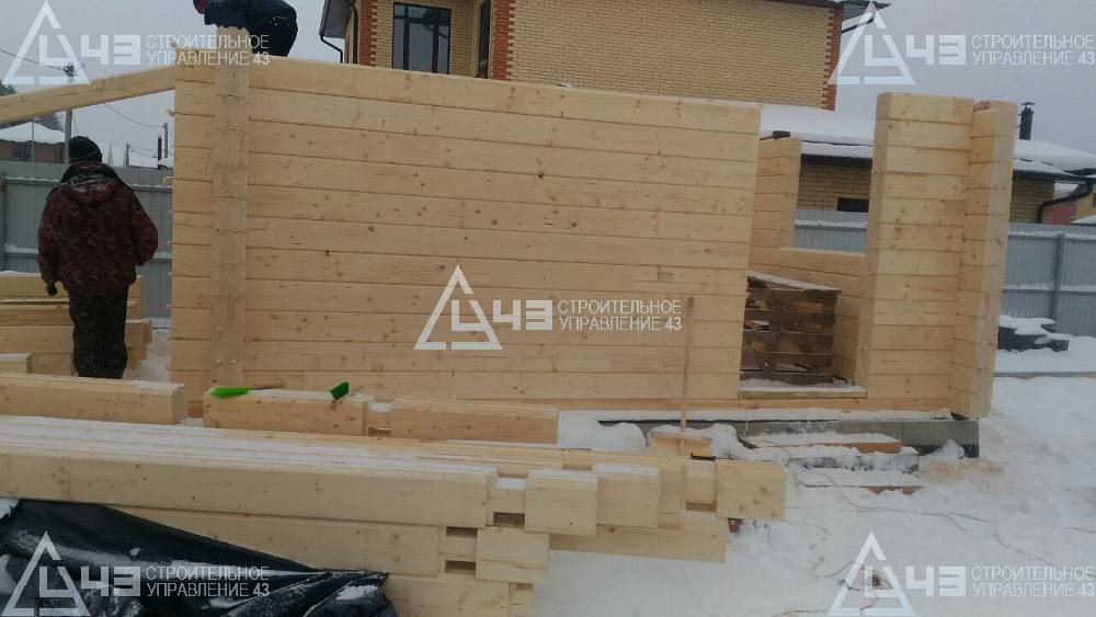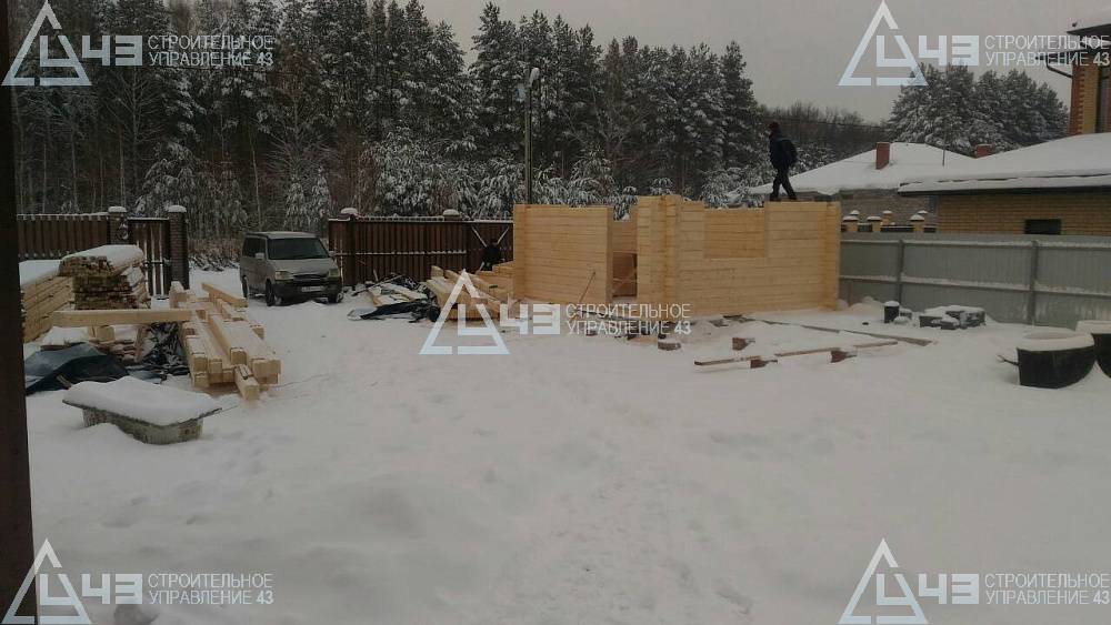 Construction of a small 16 m3 bathhouse in Tatarstan, using the glued beam with a size of 185 (h) * 160.