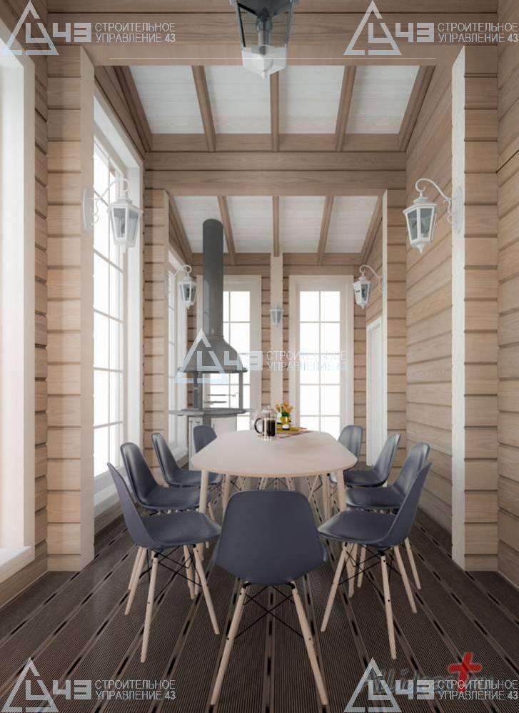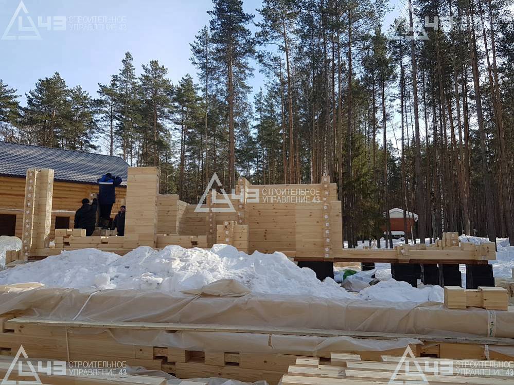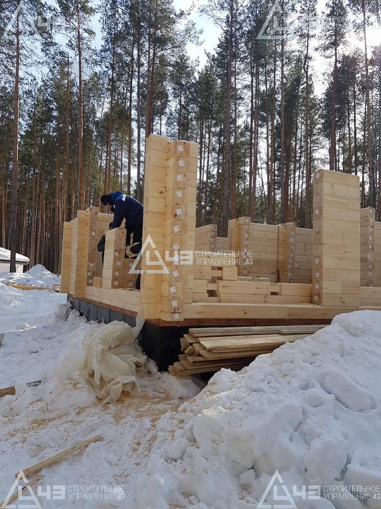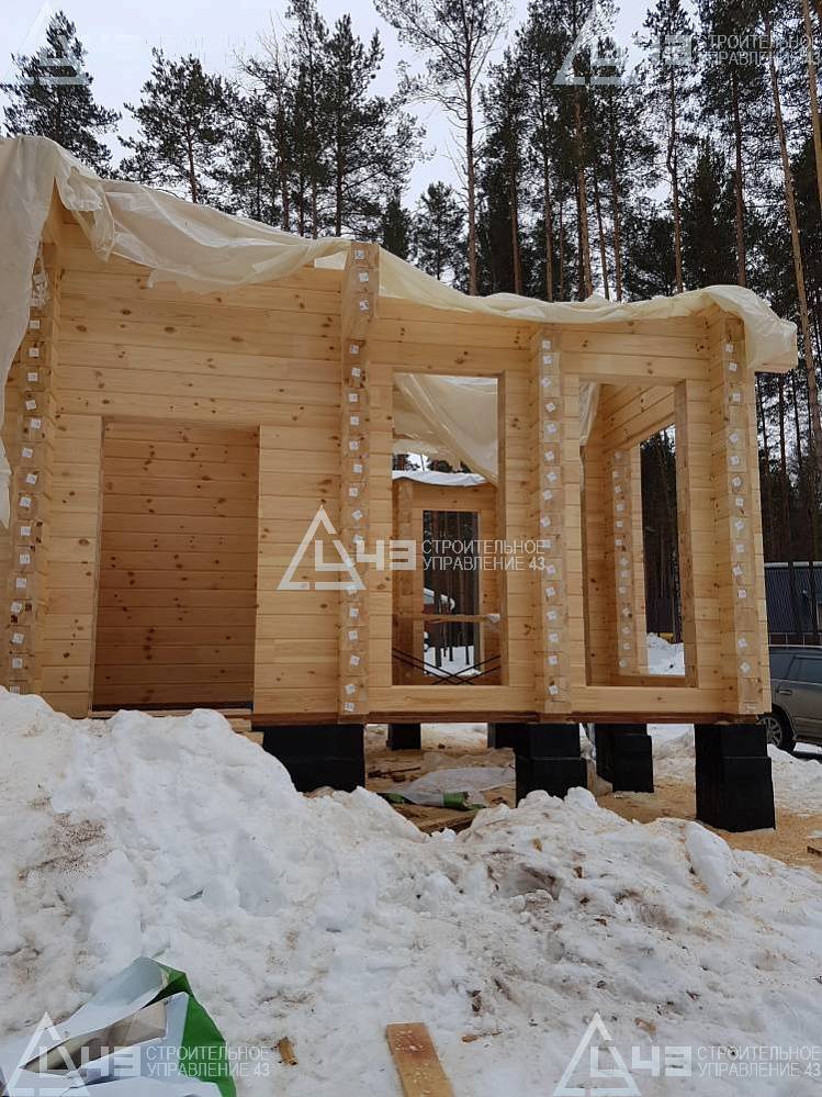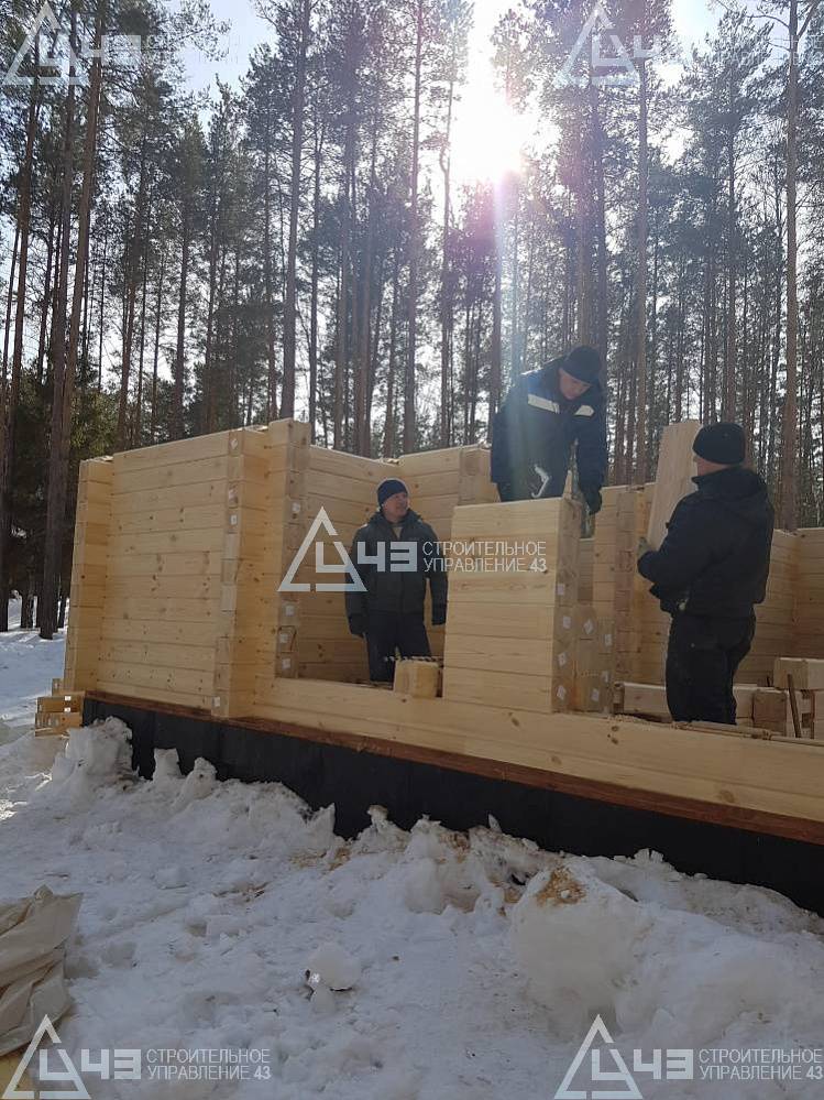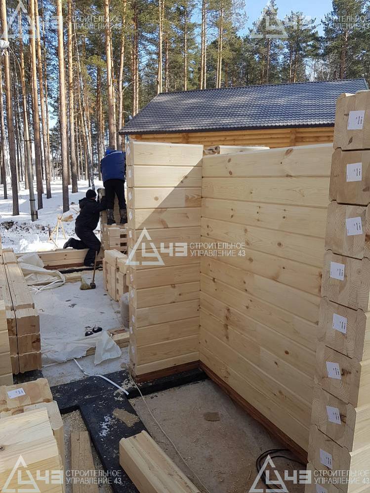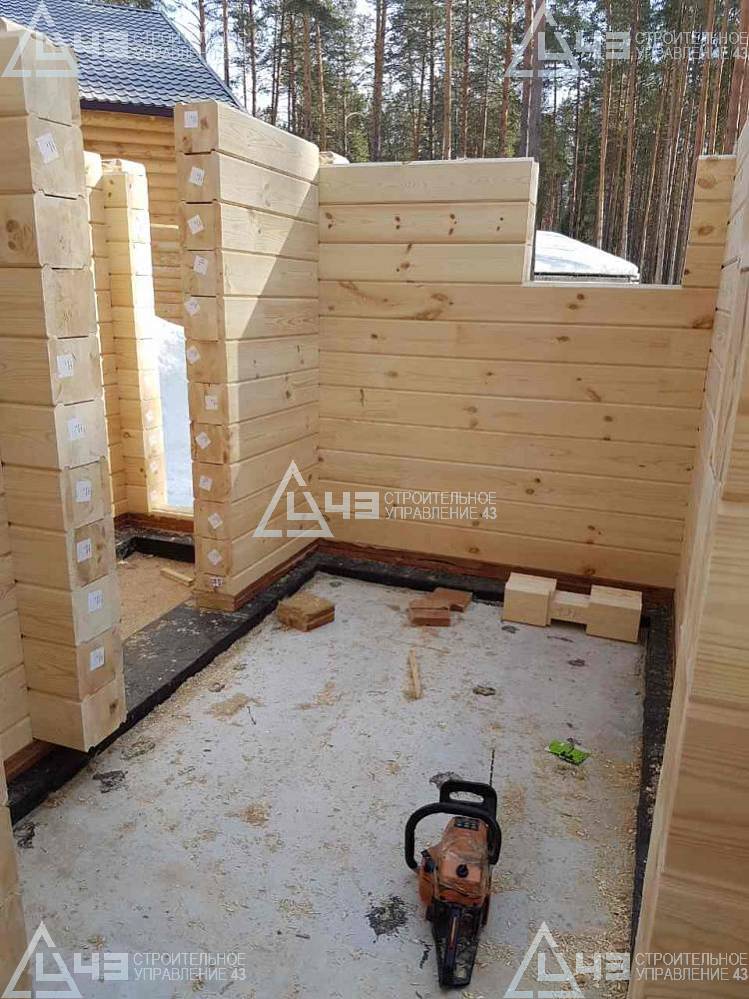 The house construction in Tchaikovsky, using the 185*200 mm glued beam. The total area is 40.48 m3. The volume of the glued beam is 44.82 m3. The idea of the house project was decided by the customer. Below you can see pictures of the house project and the construction process.