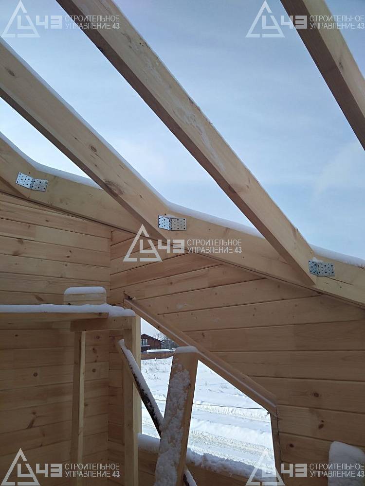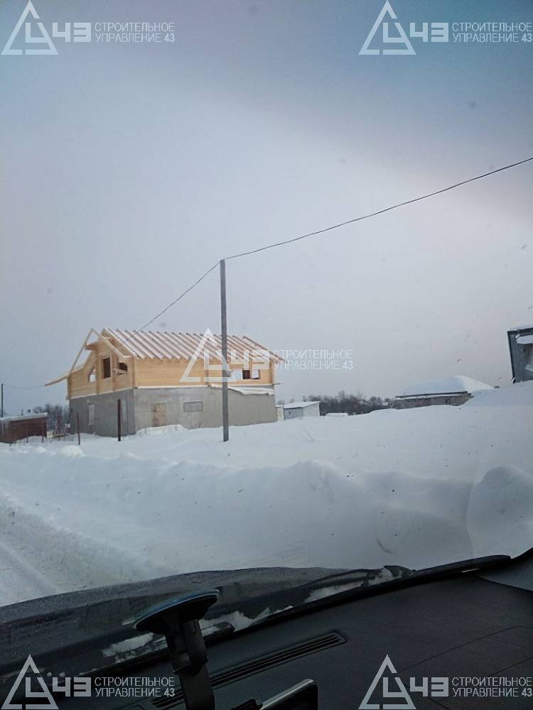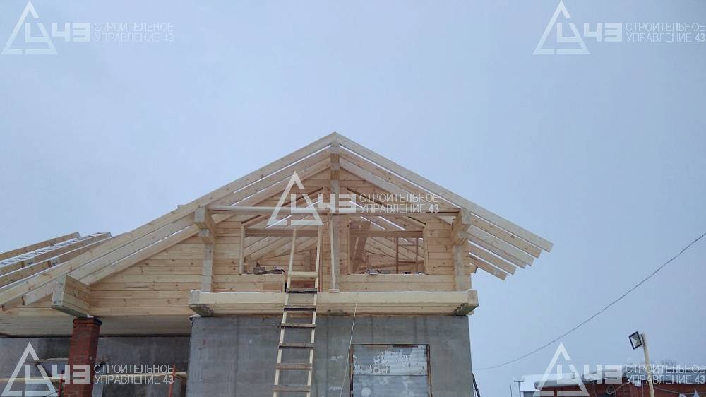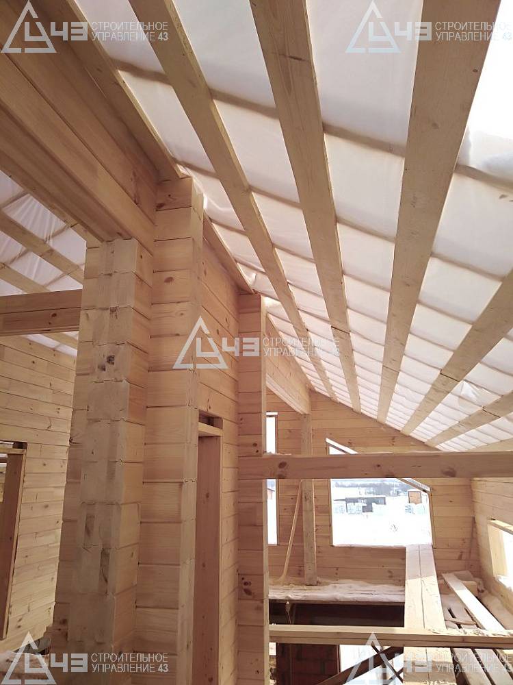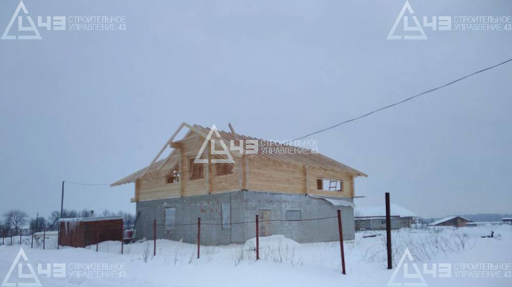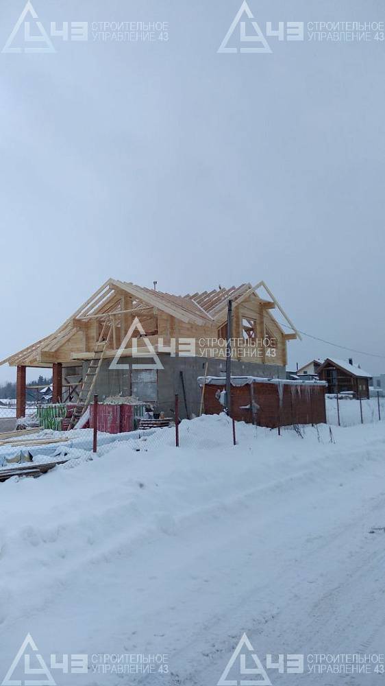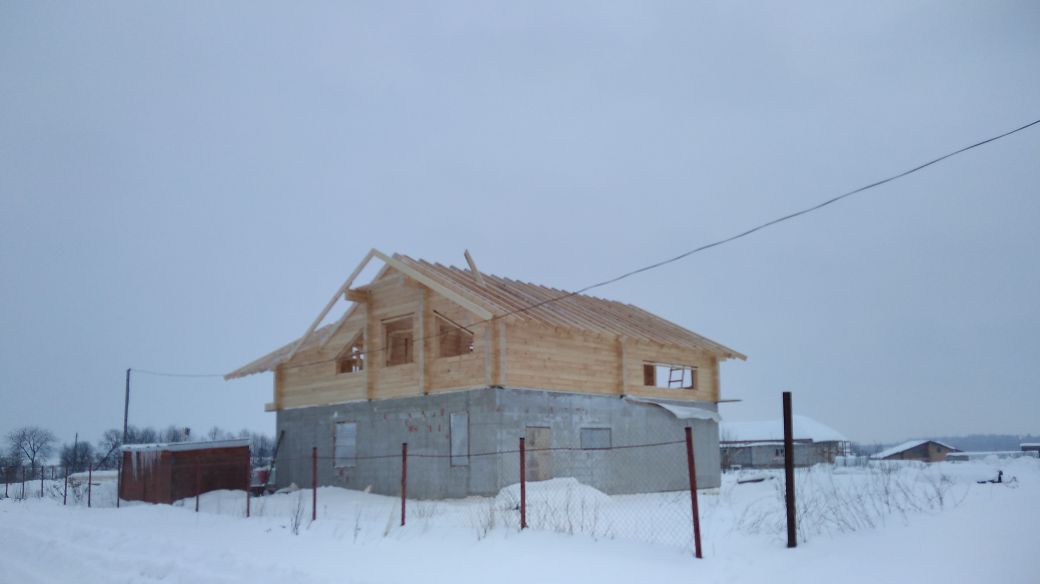 Constructing the second floor of a glued beam house in Leonovo Ecopark. Glued beam used has a size of 185 (h) * 200 mm.
